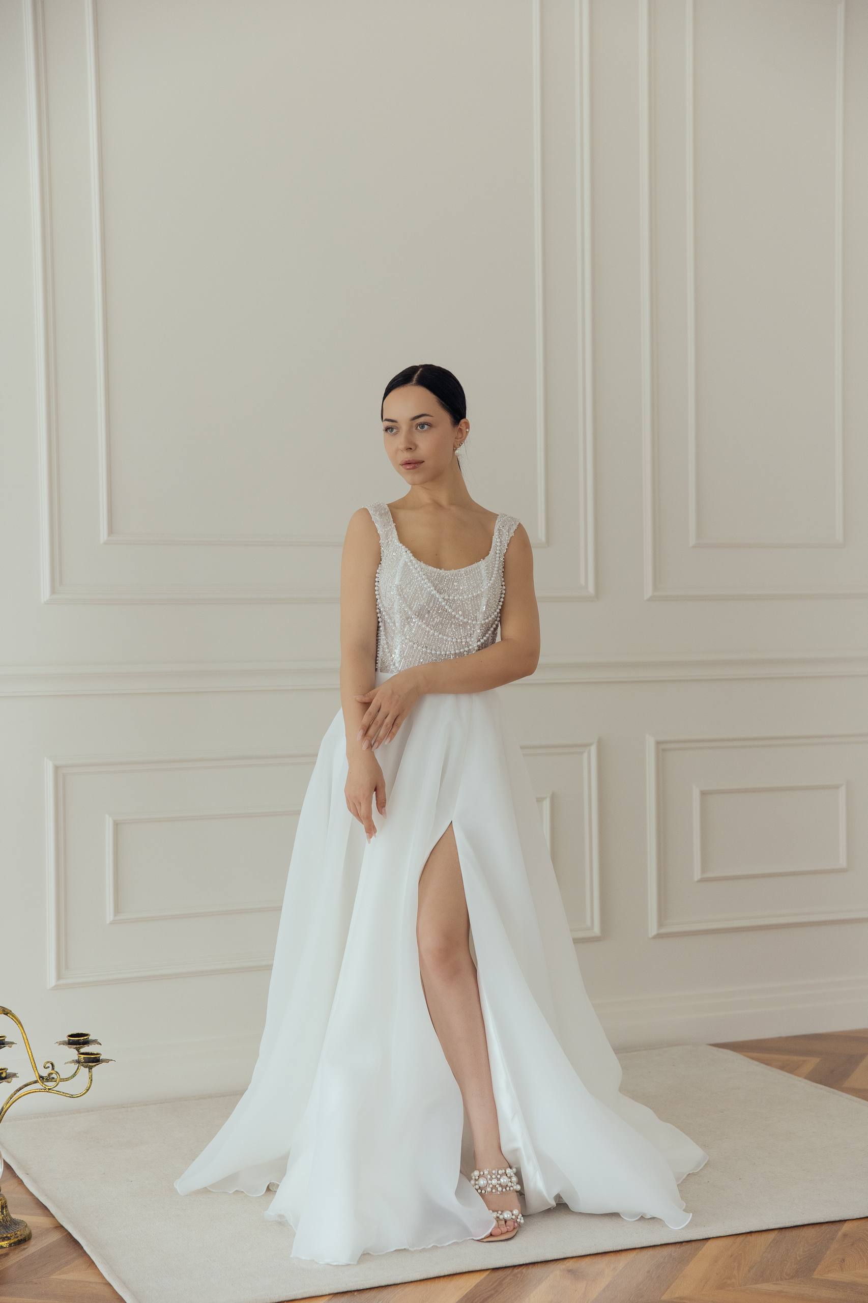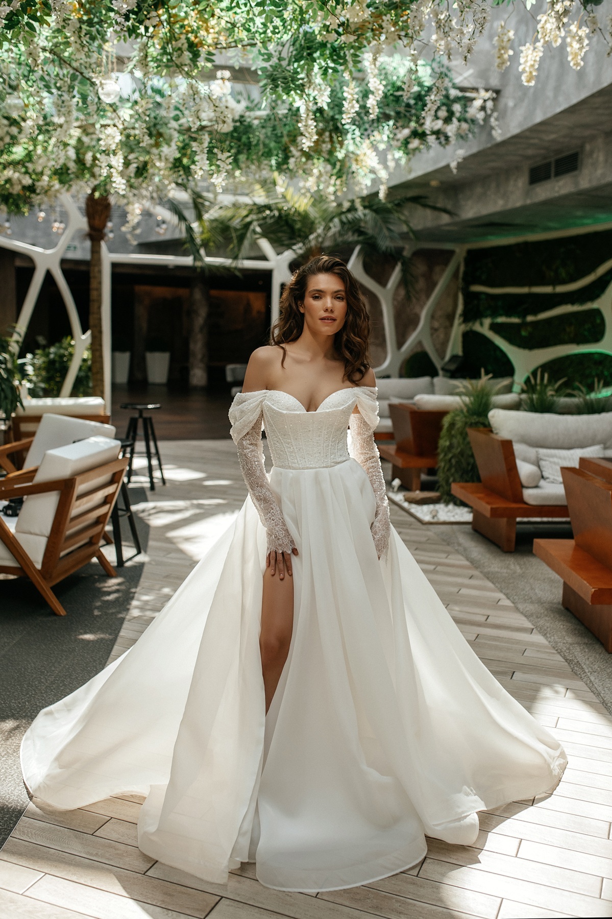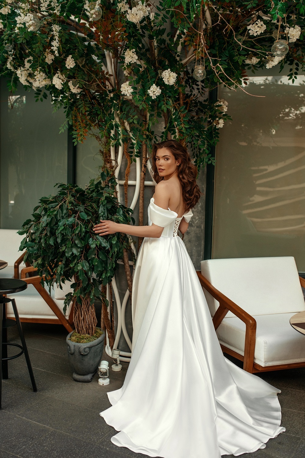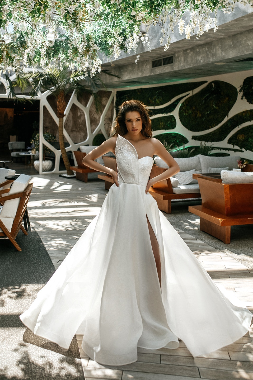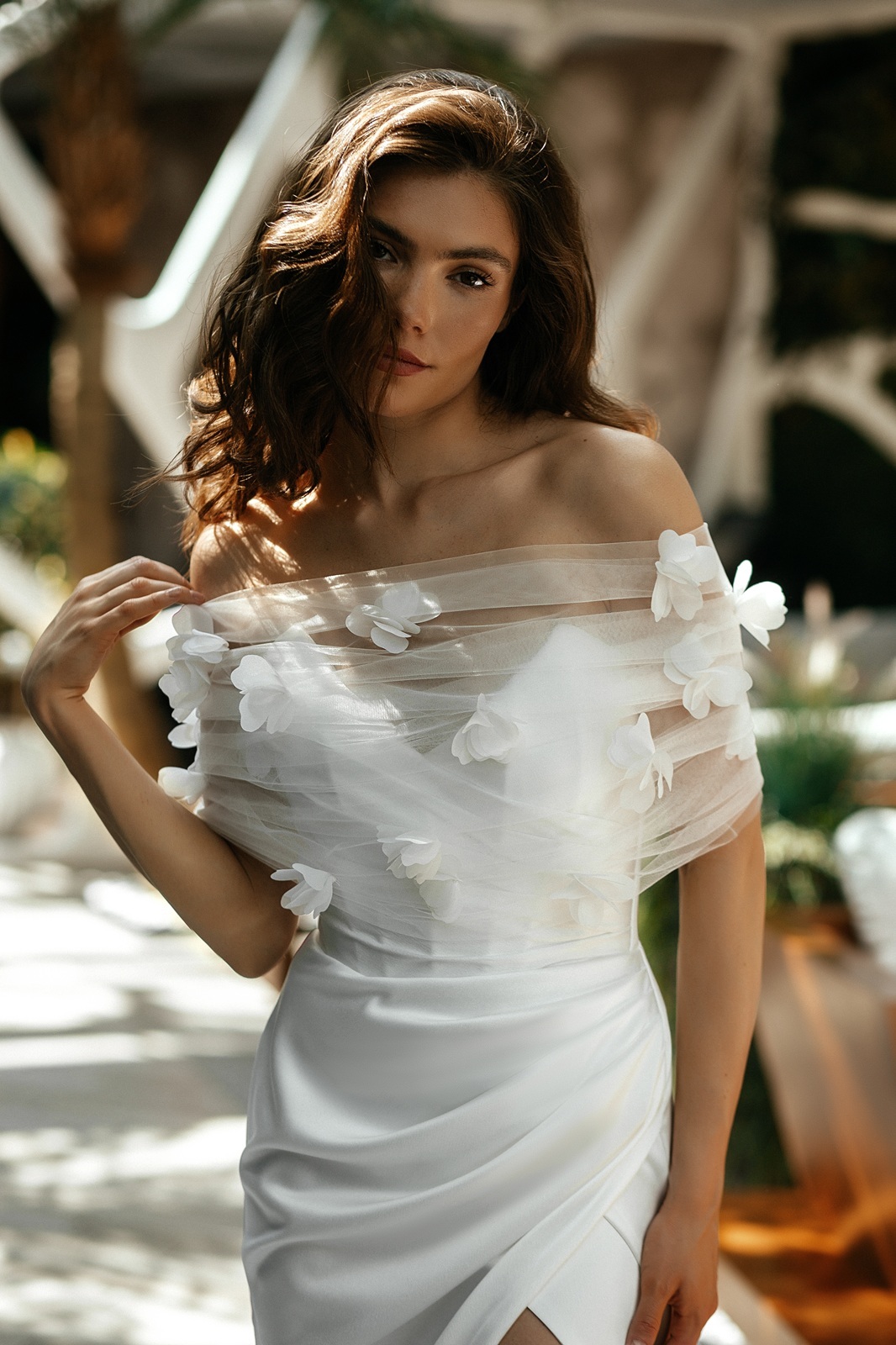 Свадебное платье Алсу - А-силуэт, разрез, шлейф и 3D цветы.