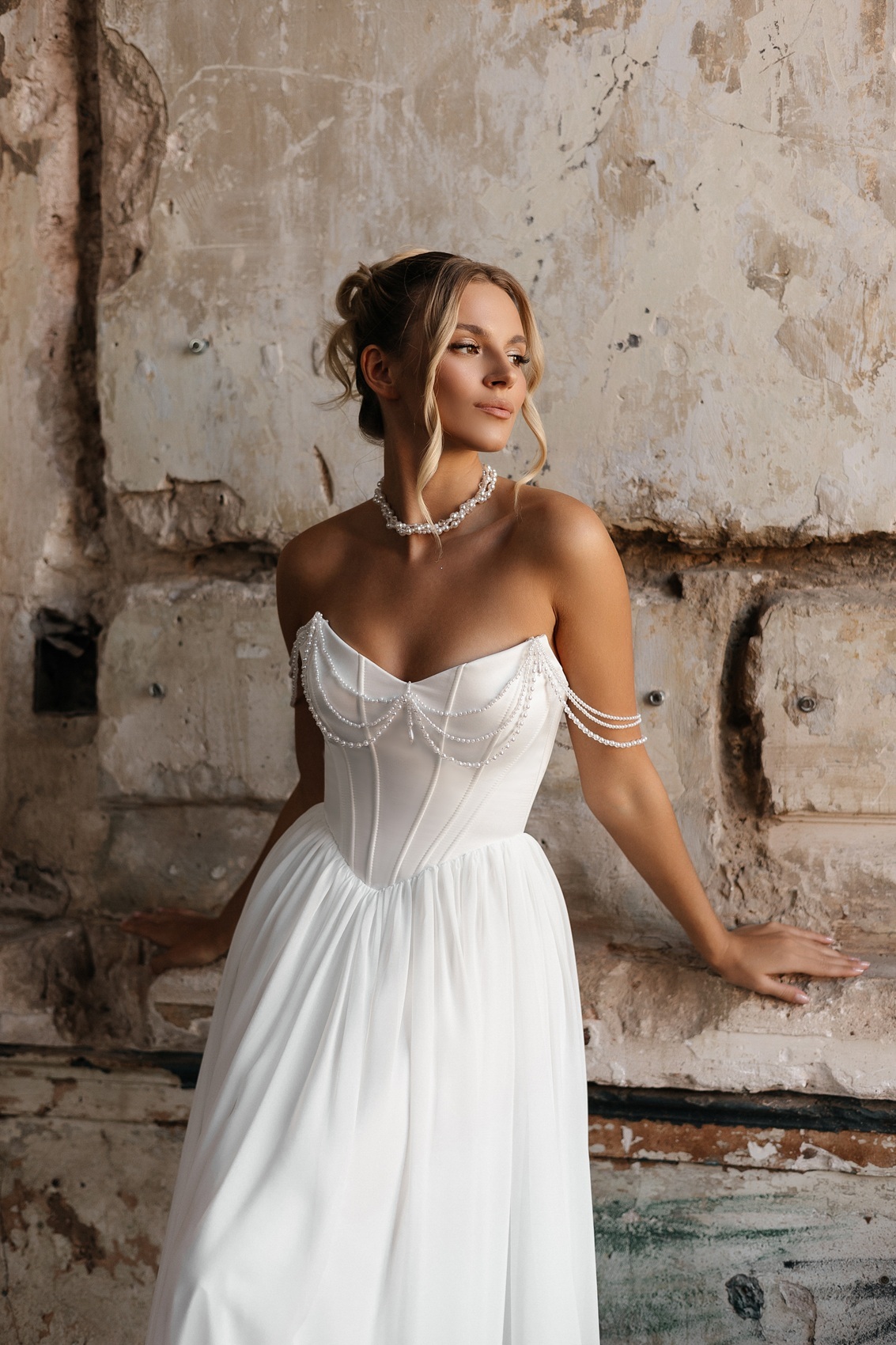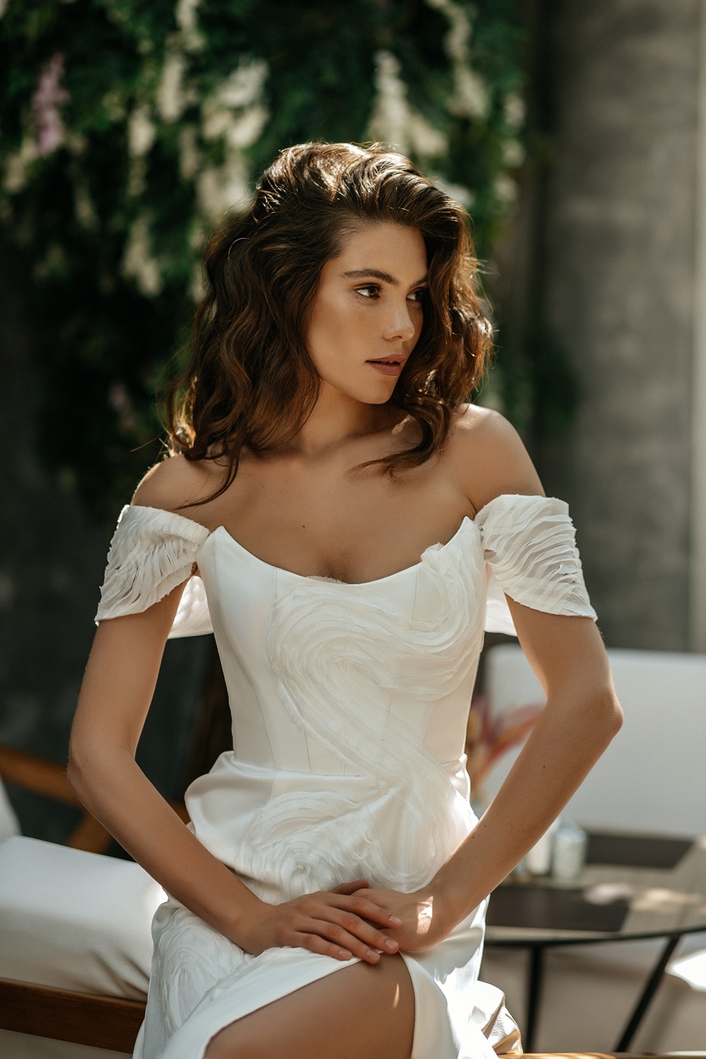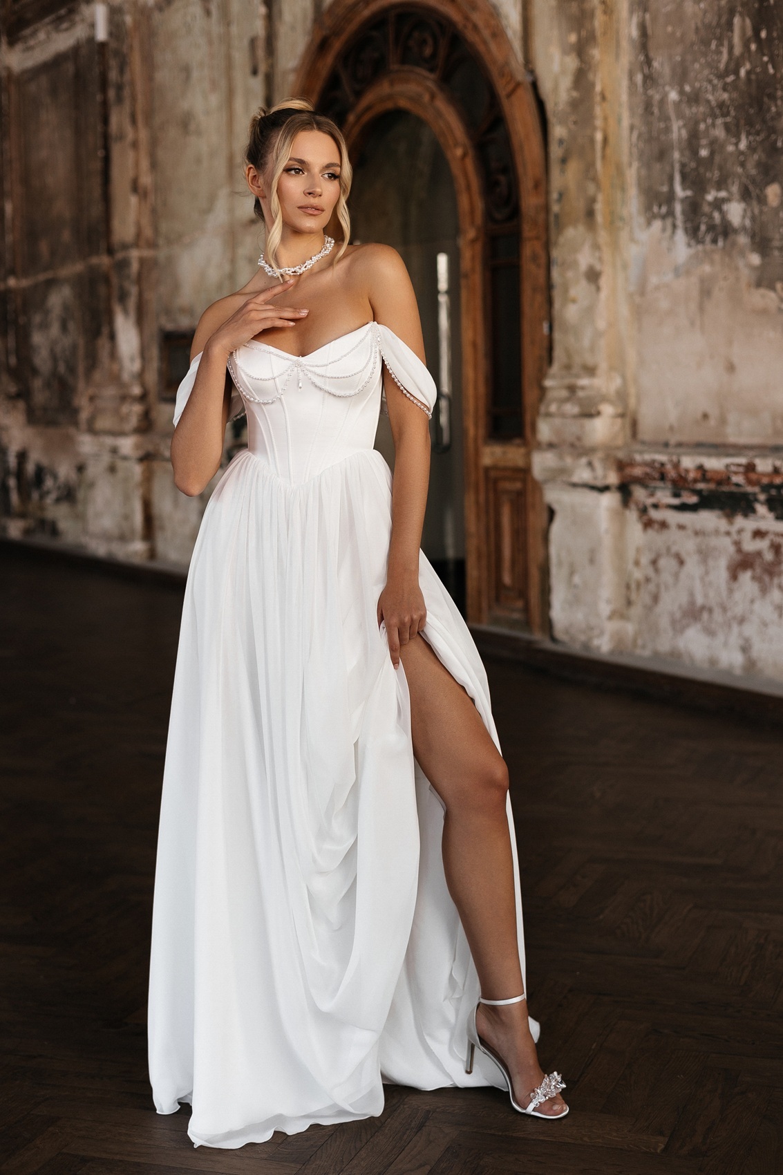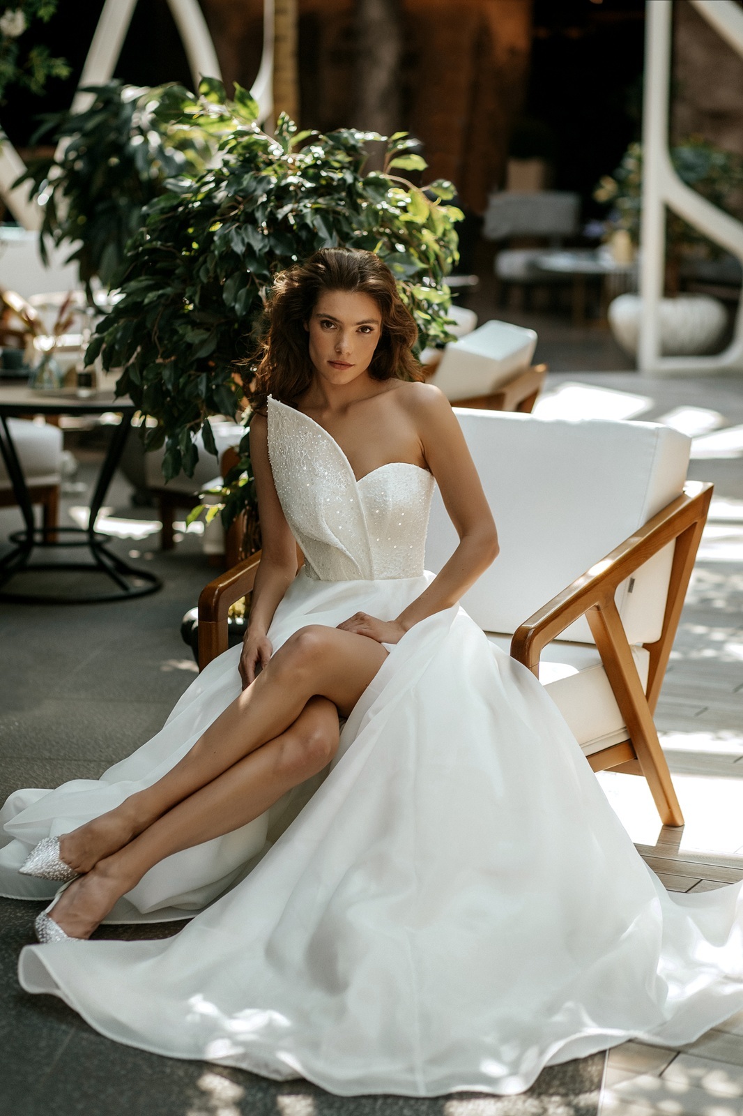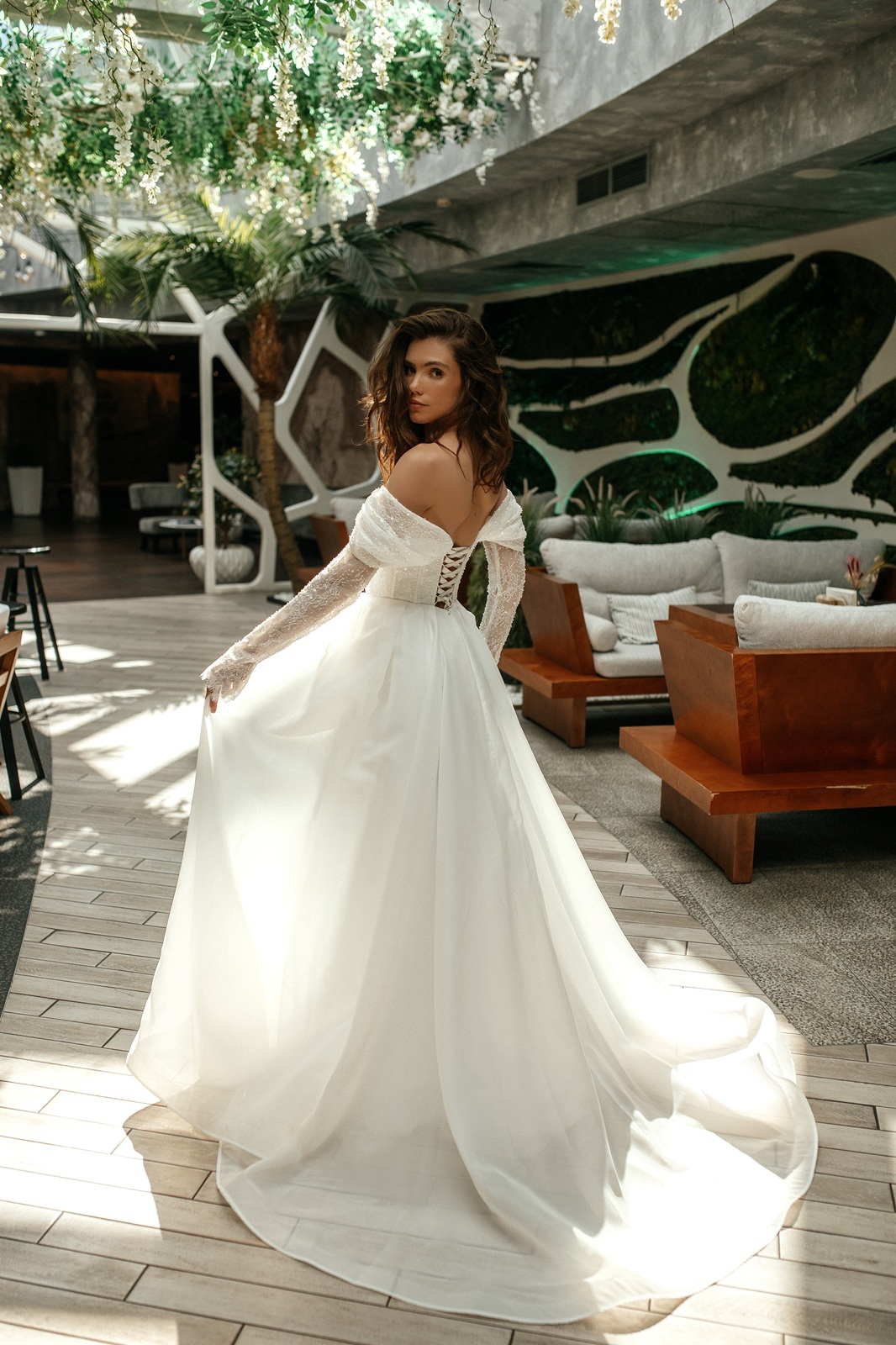 Свадебное платье Алсу - А-силуэт, разрез, шлейф и 3D цветы.