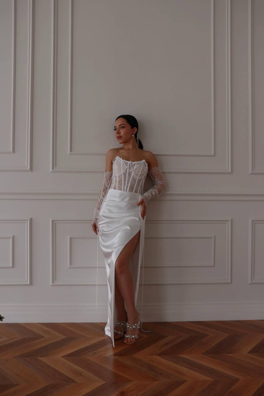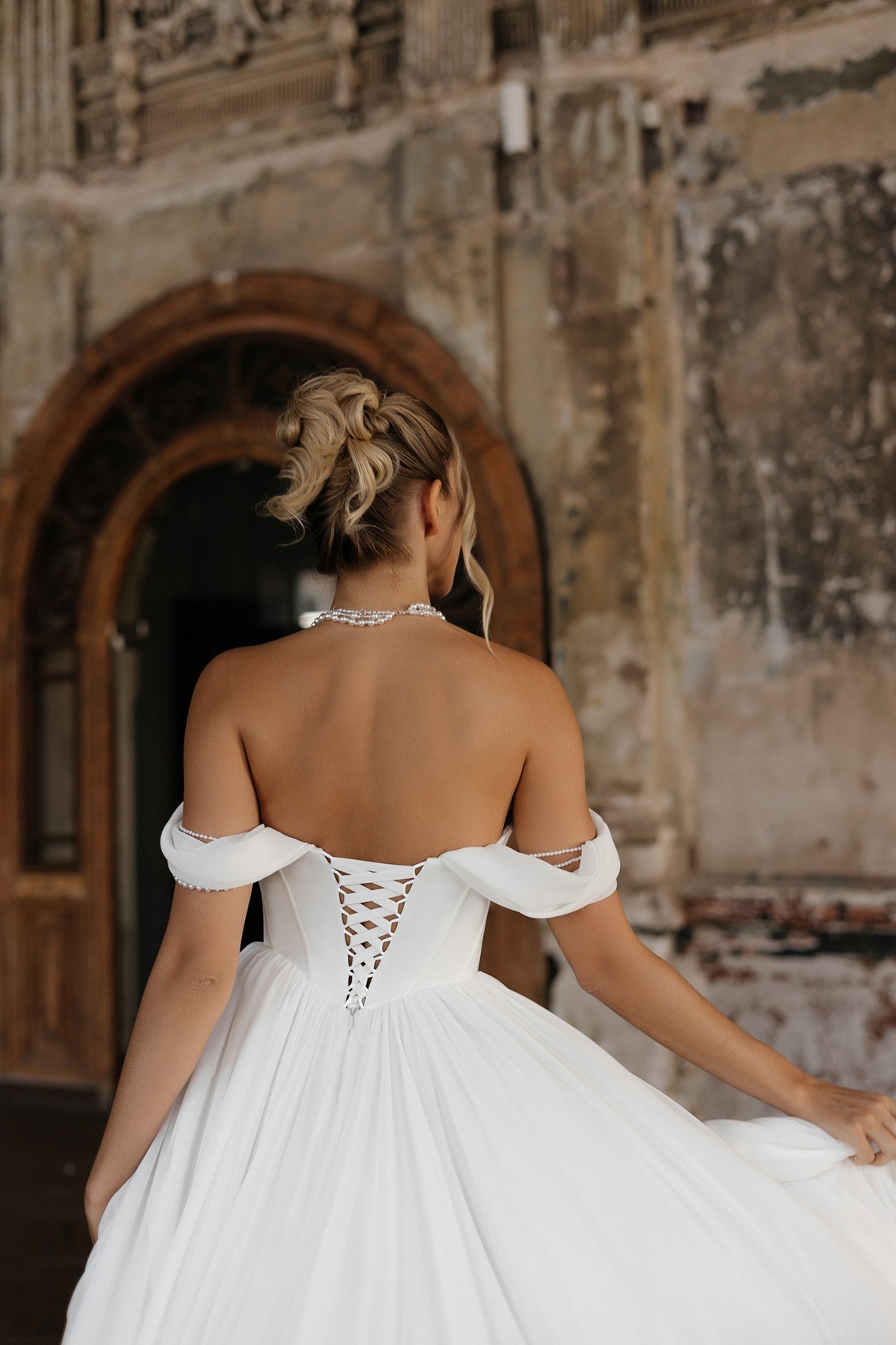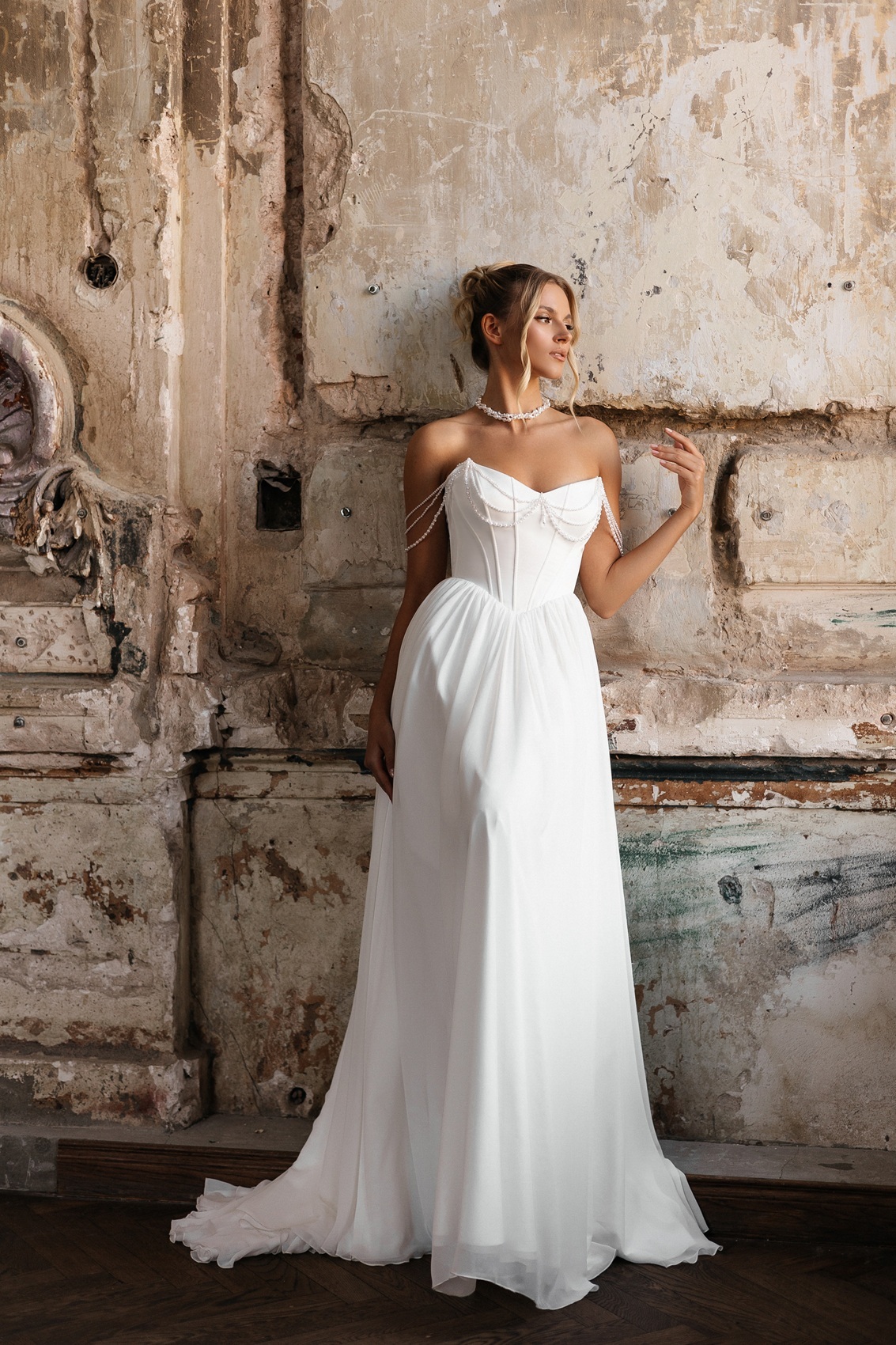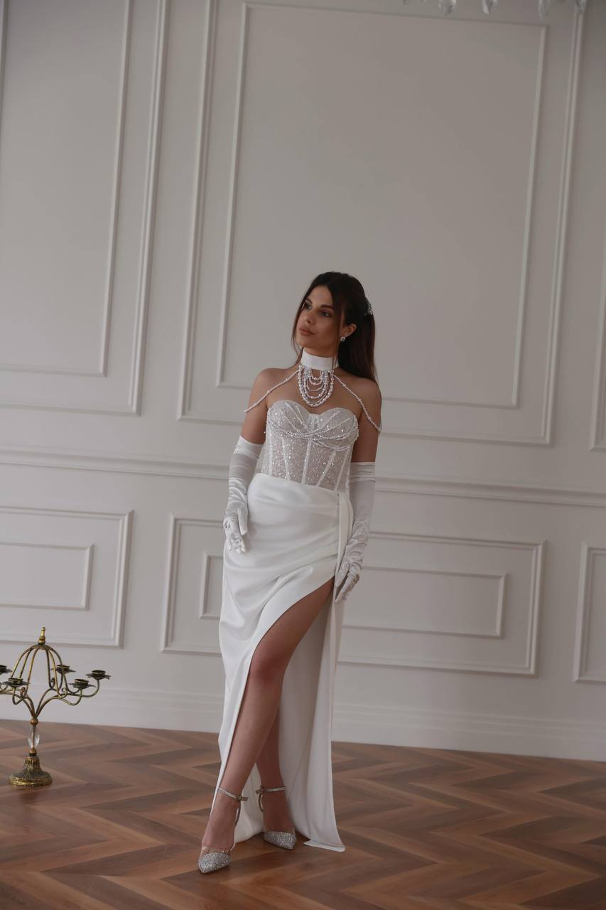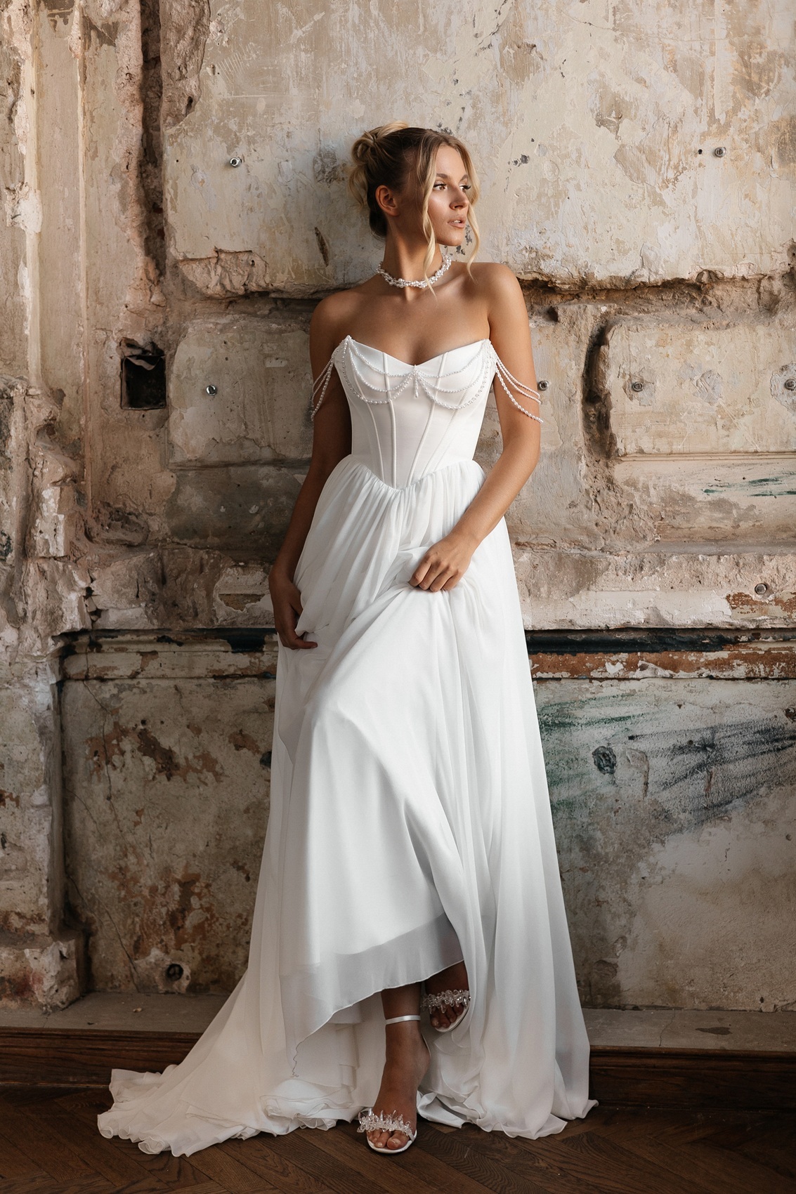 Свадебное платье Алсу - А-силуэт, разрез, шлейф и 3D цветы.
