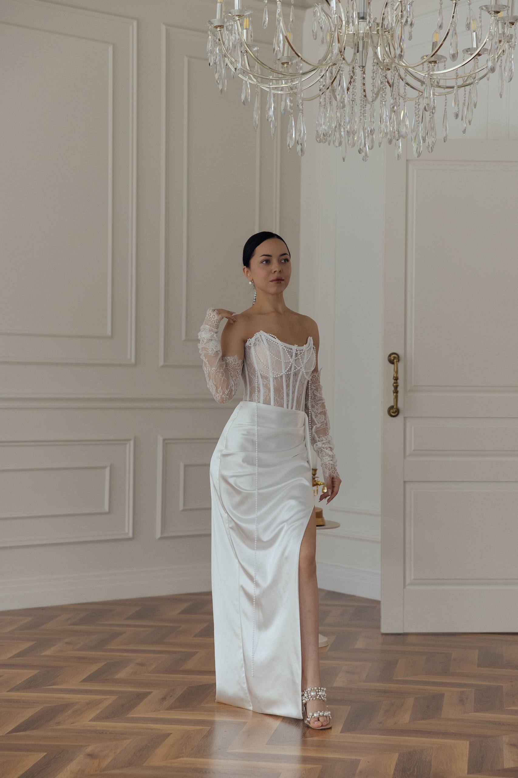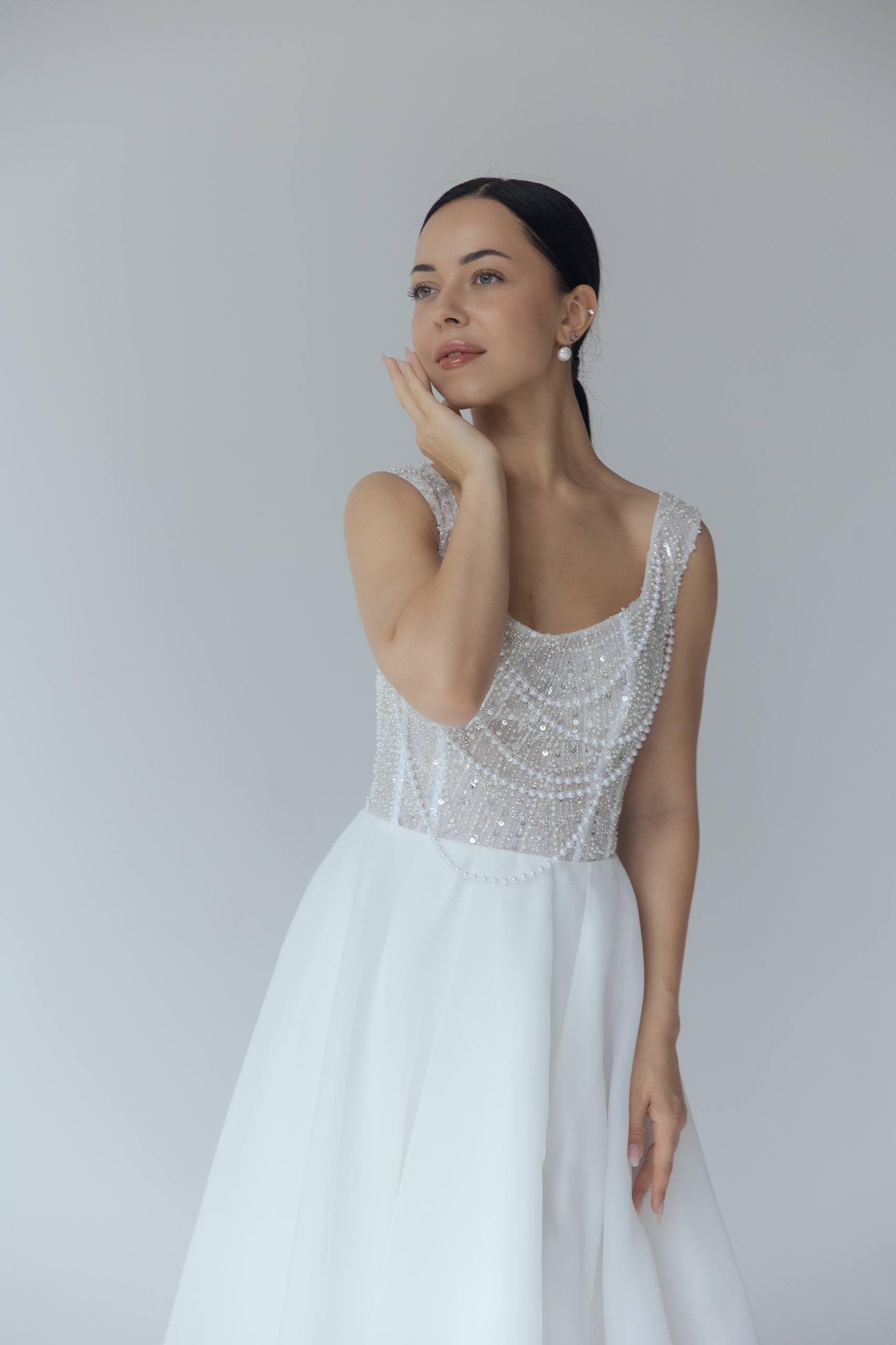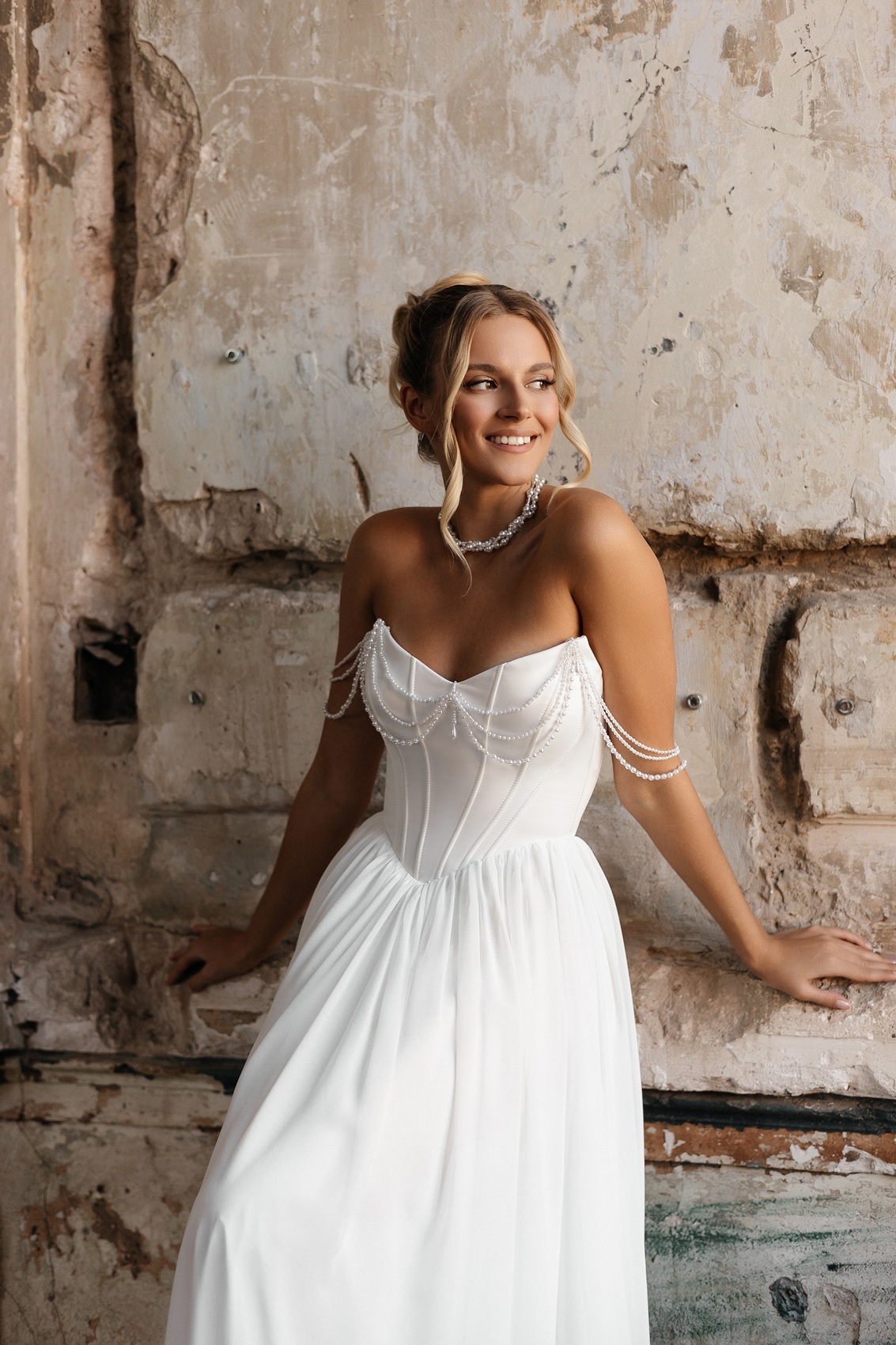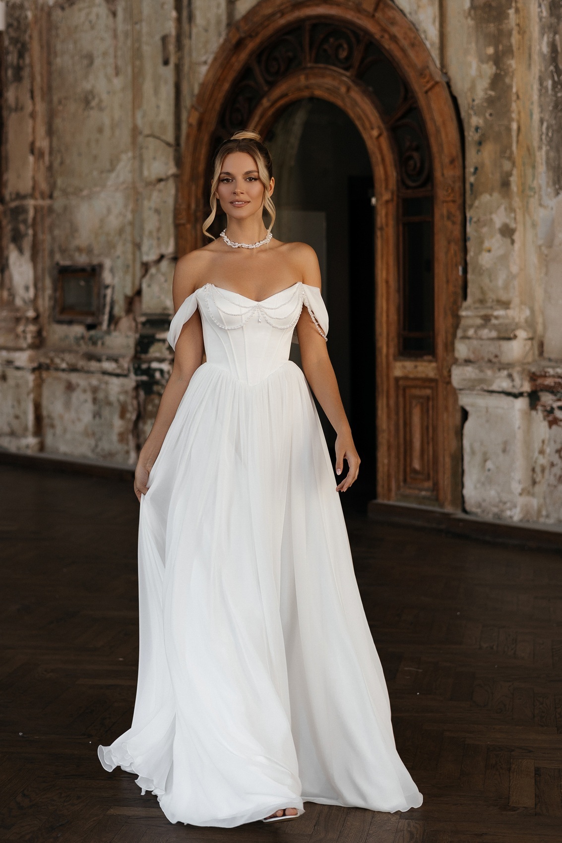 Свадебное платье Алсу - А-силуэт, разрез, шлейф и 3D цветы.