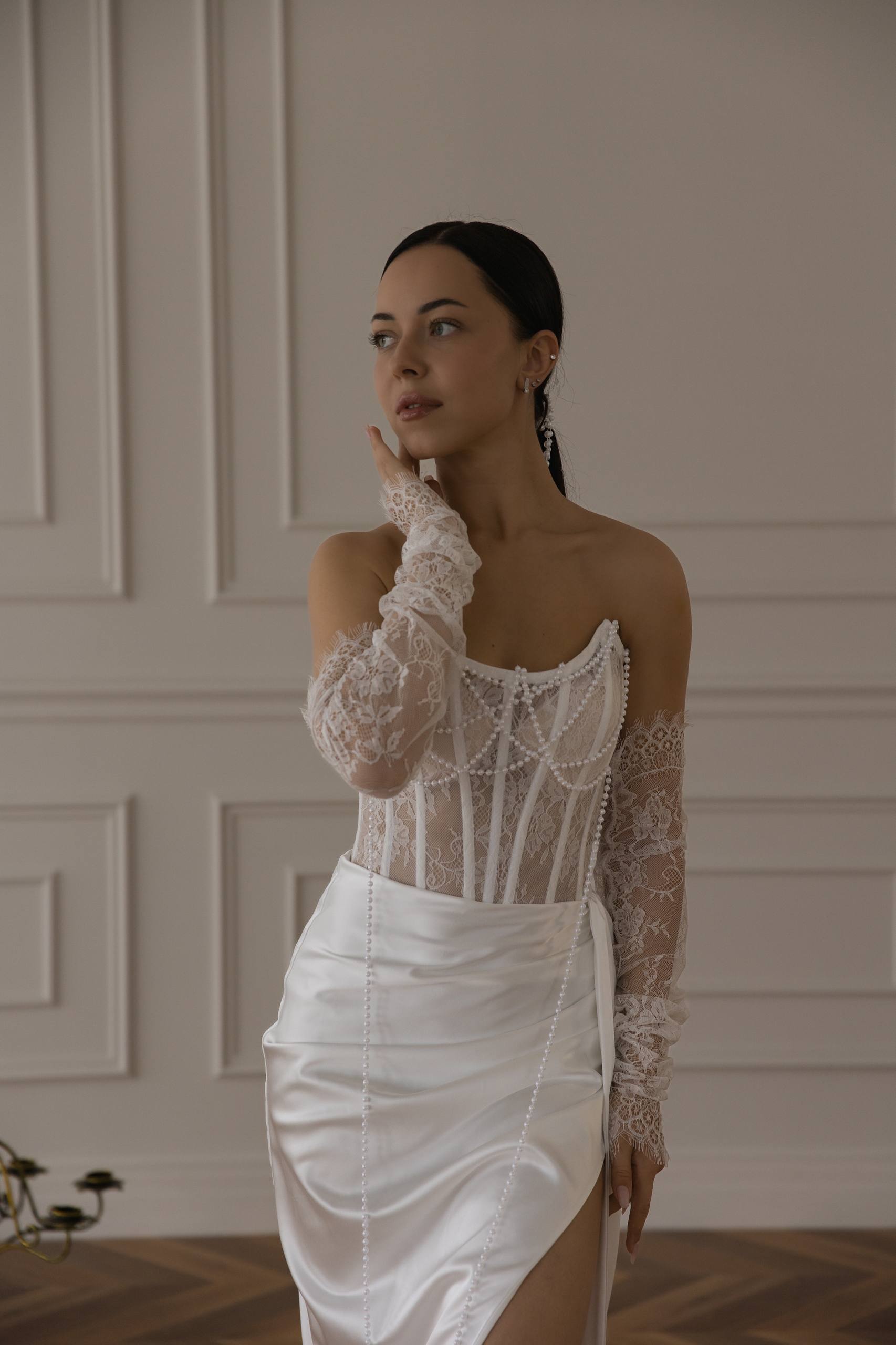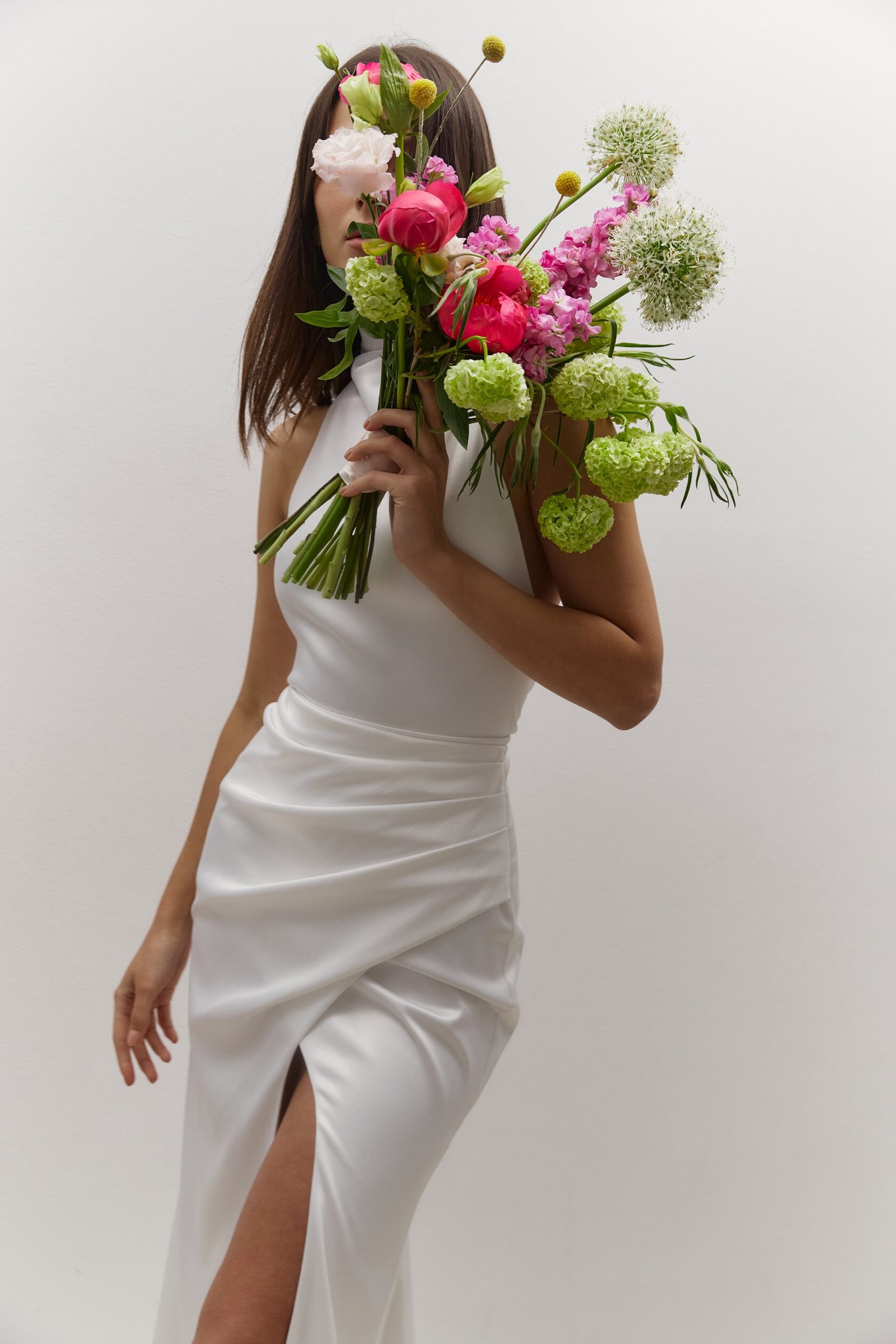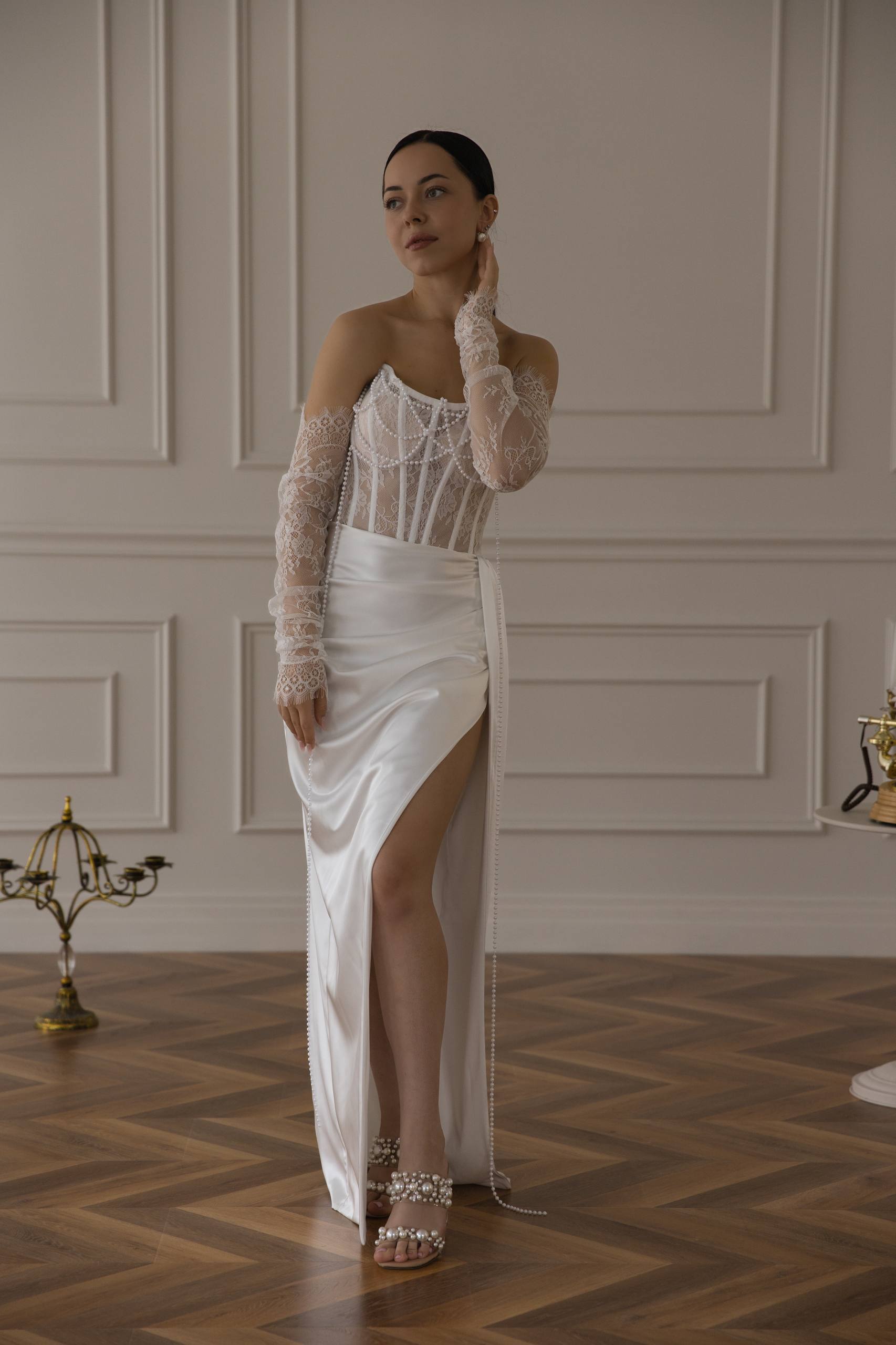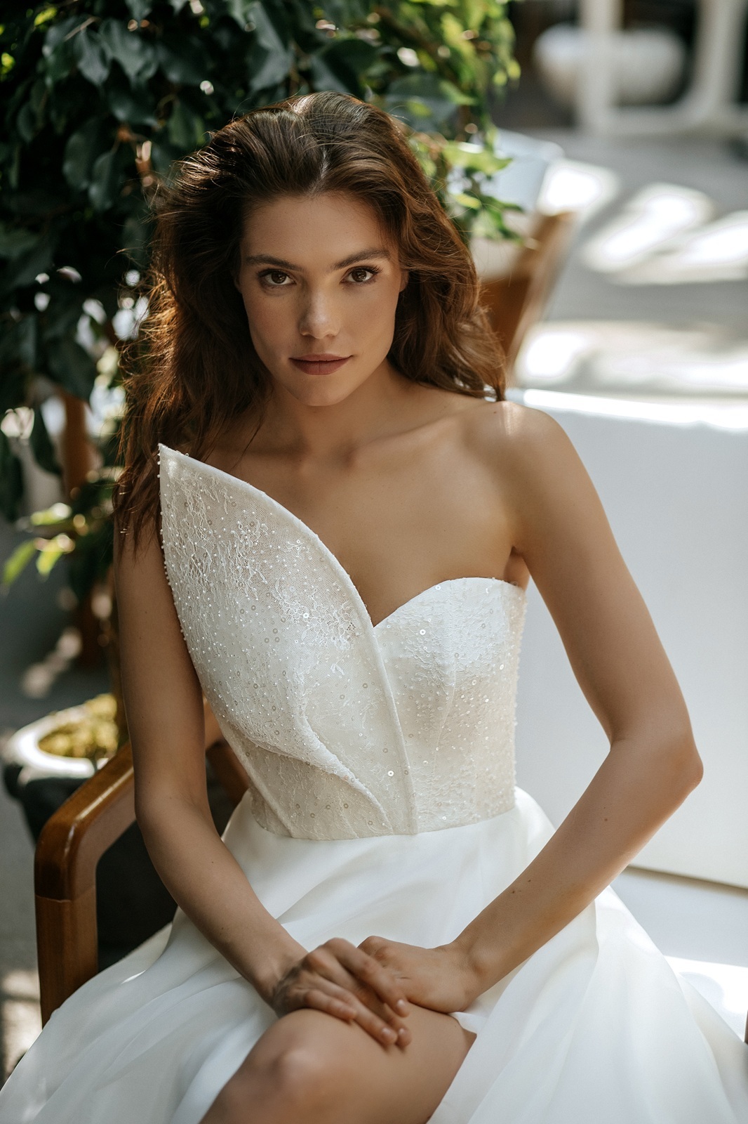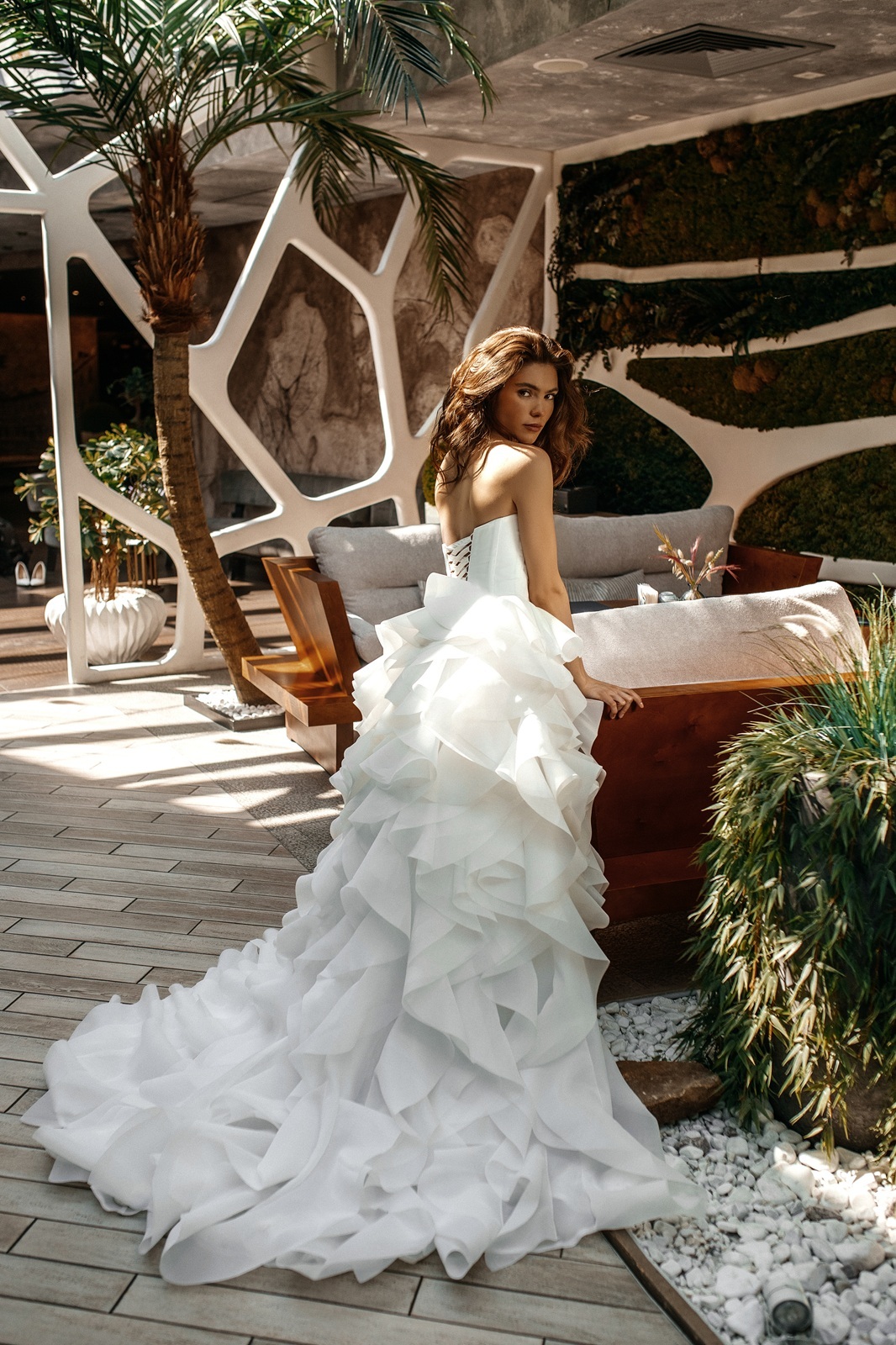 Свадебное платье Алсу - А-силуэт, разрез, шлейф и 3D цветы.