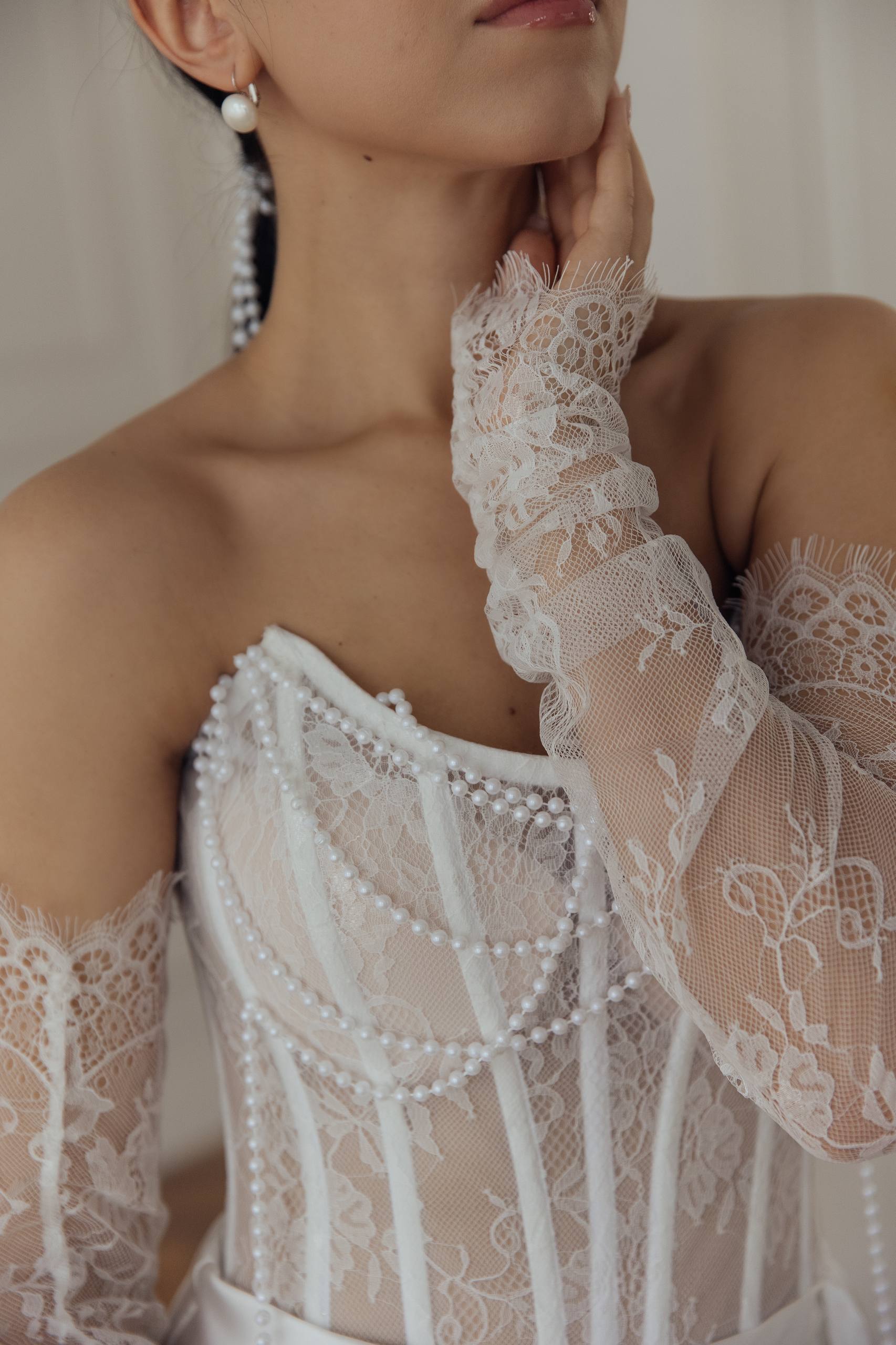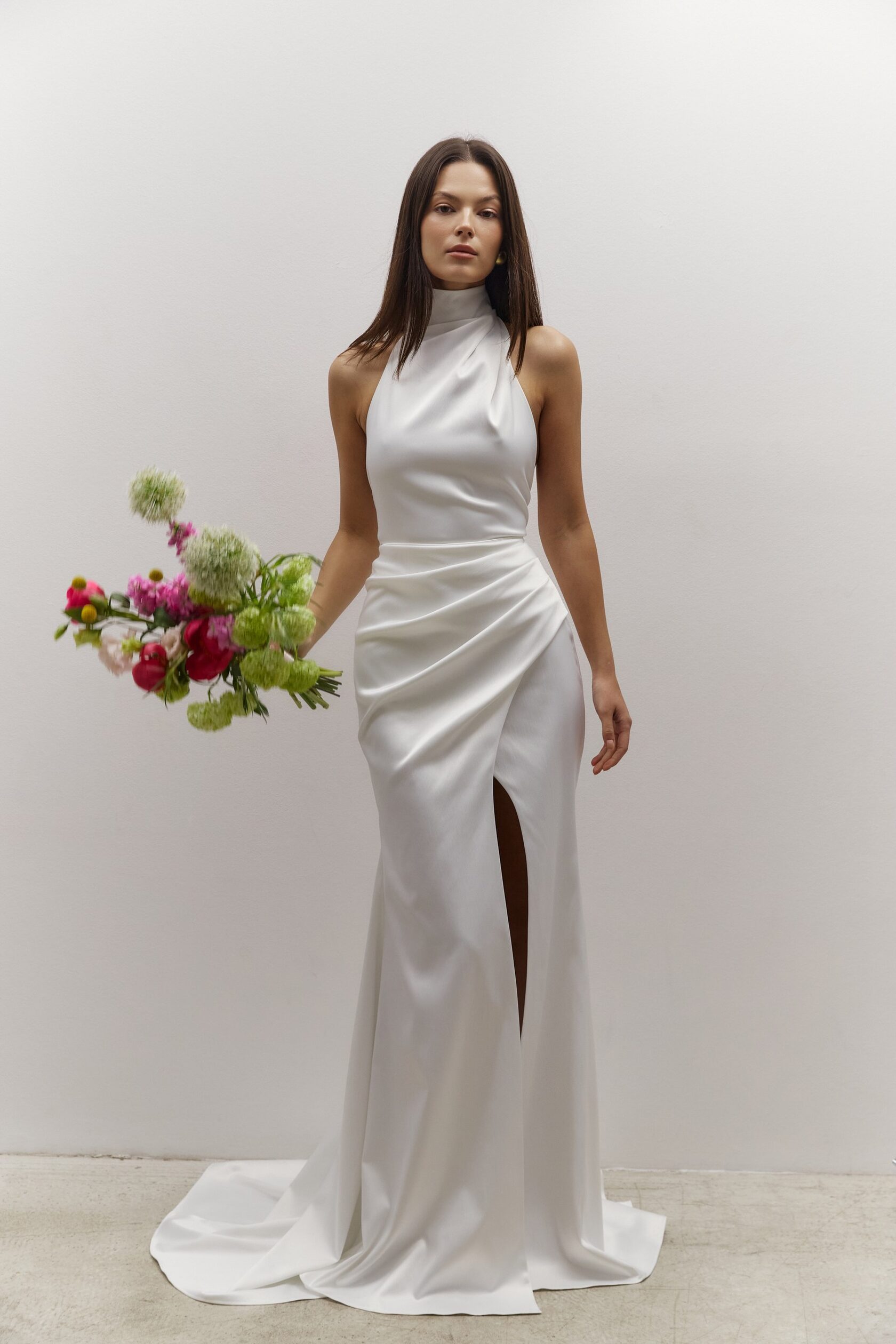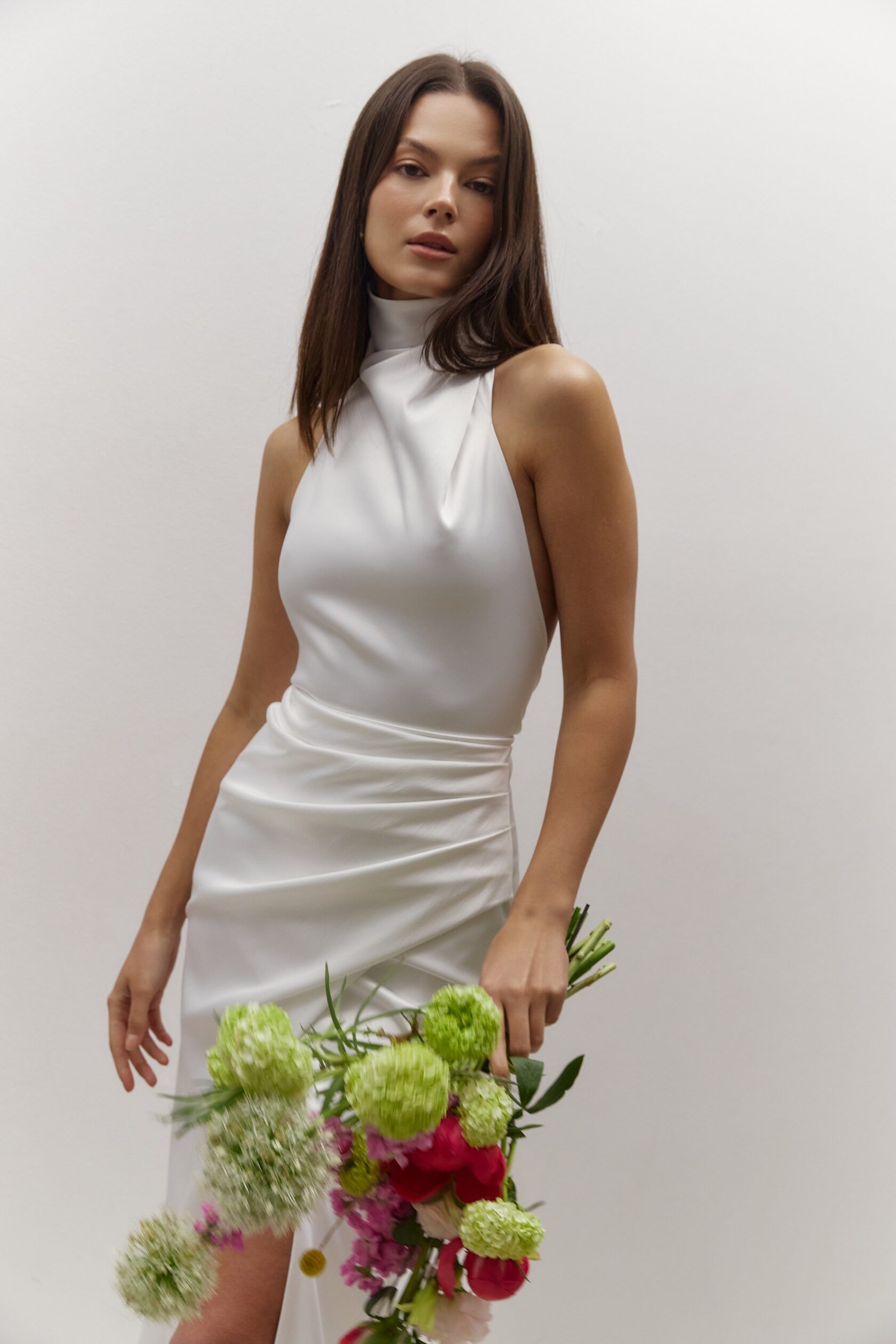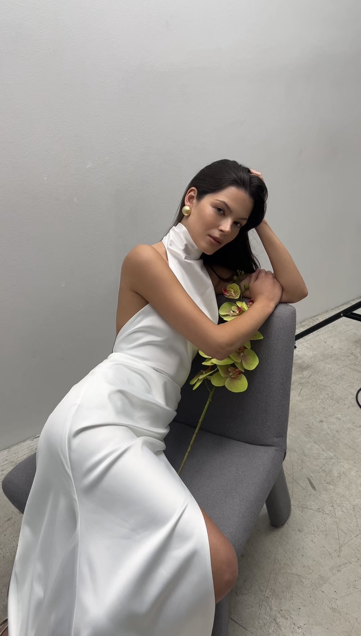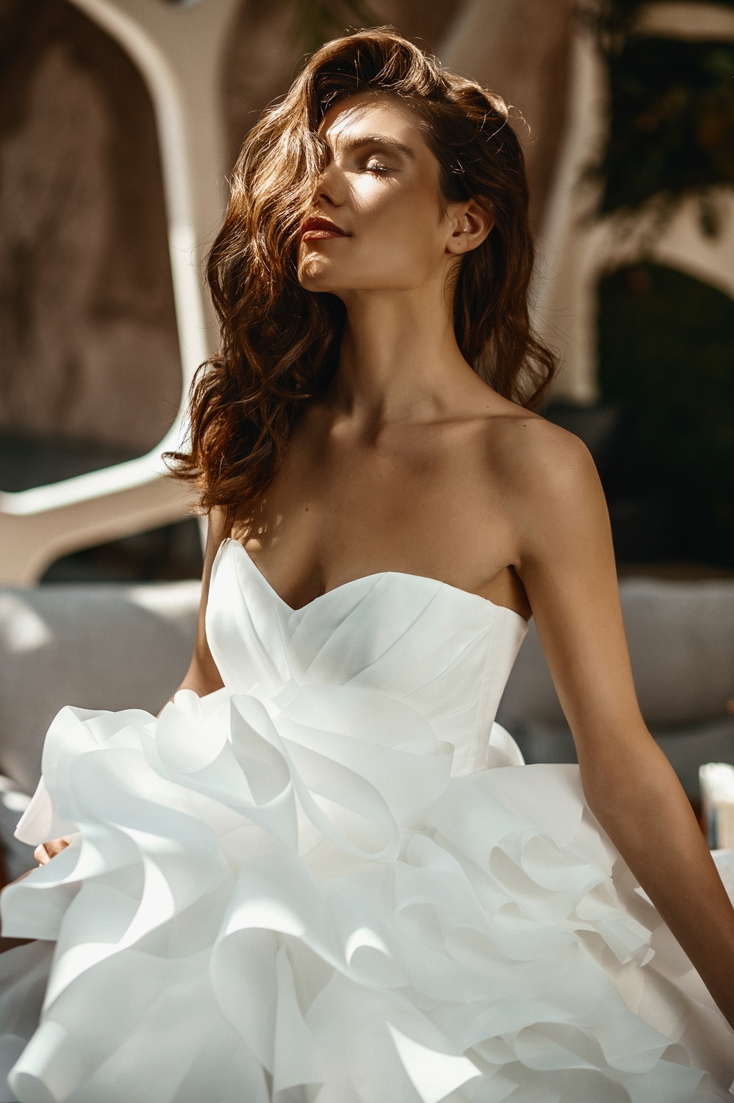 Свадебное платье Алсу - А-силуэт, разрез, шлейф и 3D цветы.