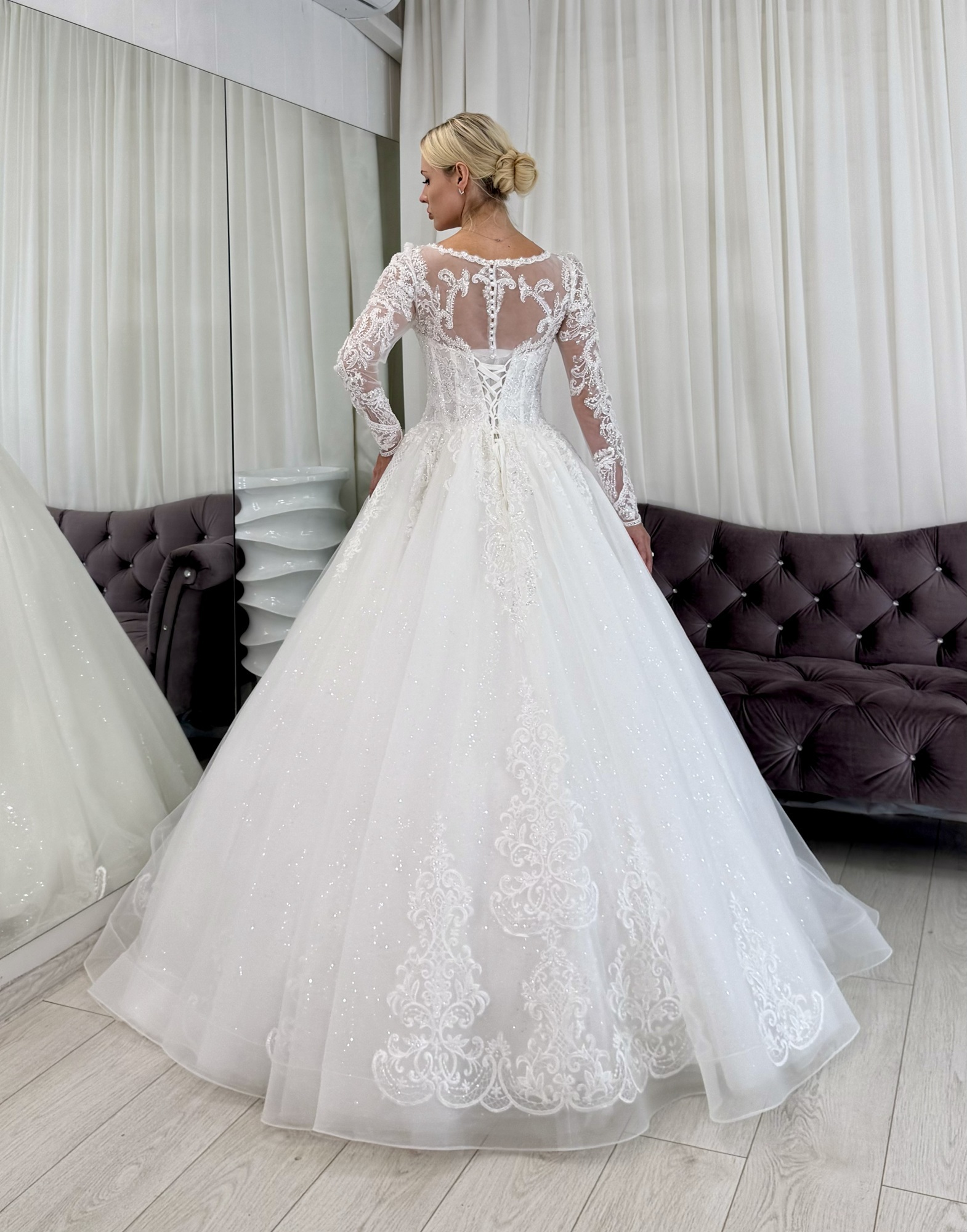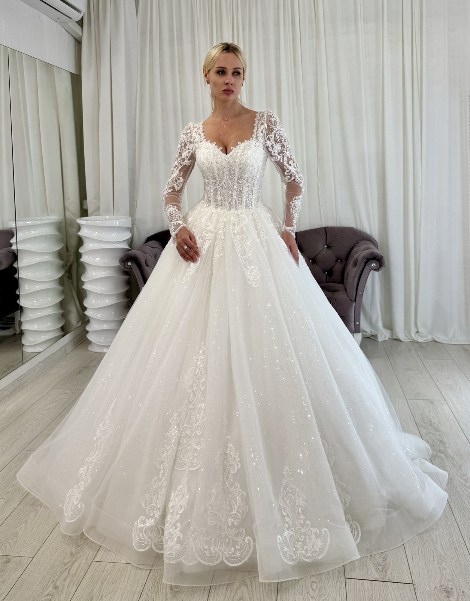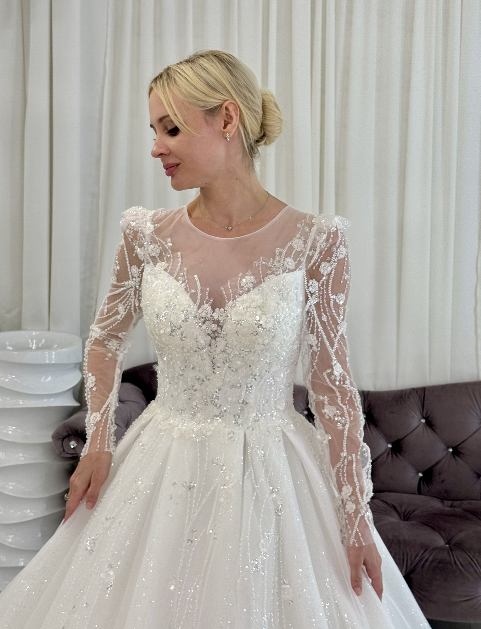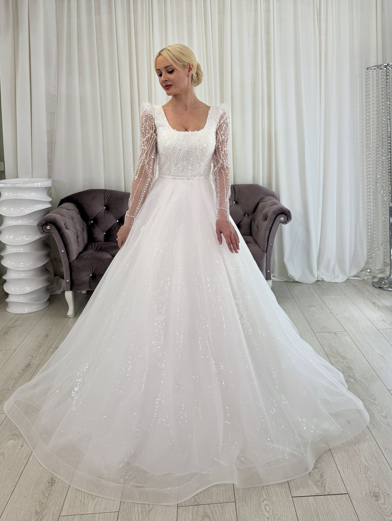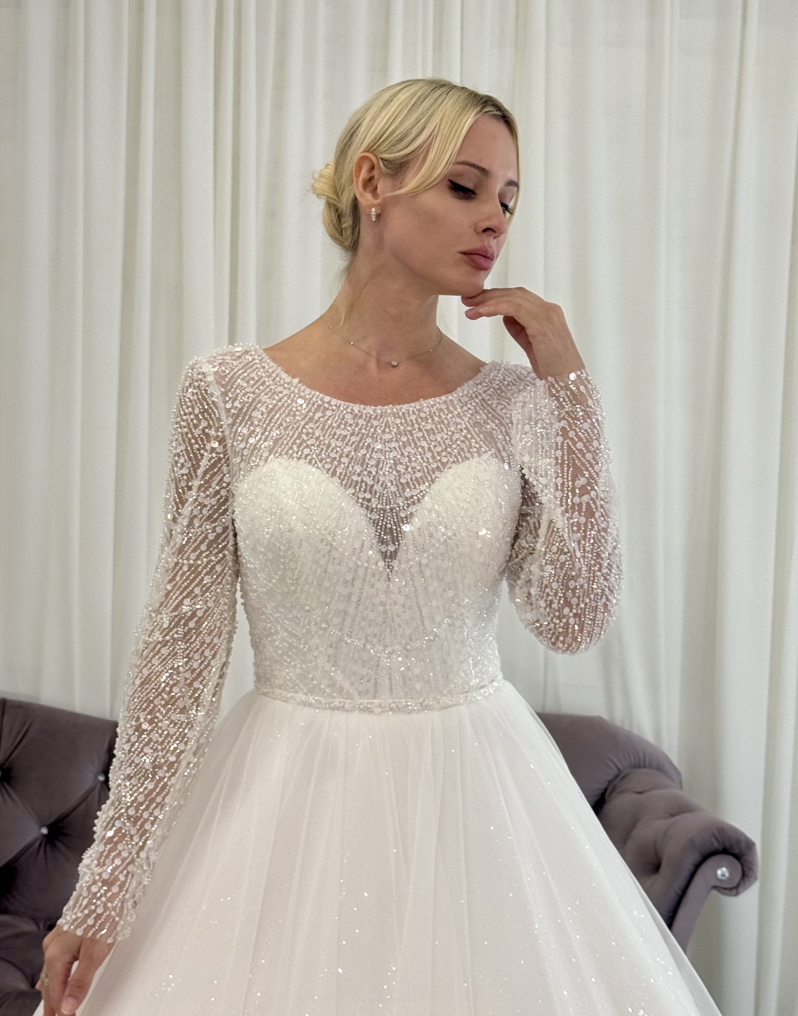 Свадебное платье Хана - сверкающая юбка глиттер с запАхом, полупрозрачный корсет с чашками и жемчугом.